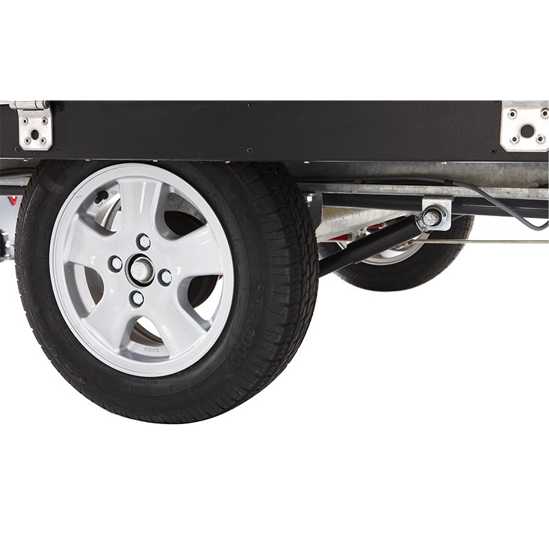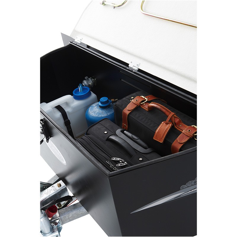 Dieses Modell verfügt serienmäßig über einen starren Deckel mit integriertem Gepäckträger und eine Bremsachse.